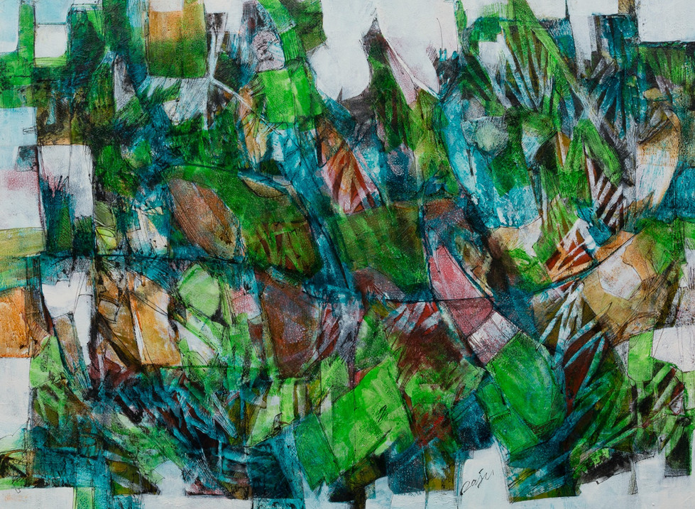 Hyderabad‐based artist Raju Epuri works in mixed media, acrylics and charcoal. His abstract compositions feature waves and flows of colour, combining spontaneity with meditative rhythm. Epuri has exhibited across India and his works have been collected internationally(